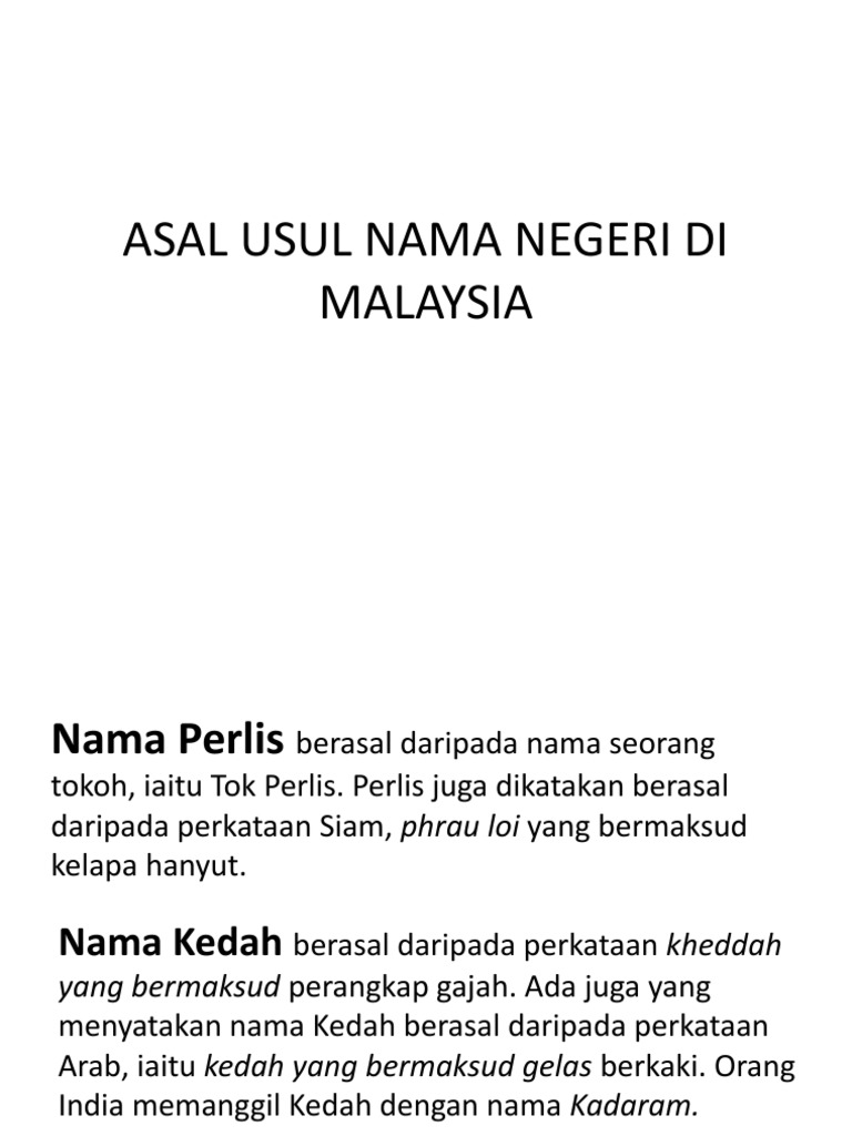 Asal Usul Nama Negeri Di Malaysia Bab2 Pdf